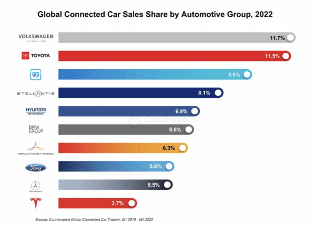 - 到 2022 年,4G 轿车占有了联网轿车销量的 95% 以上;